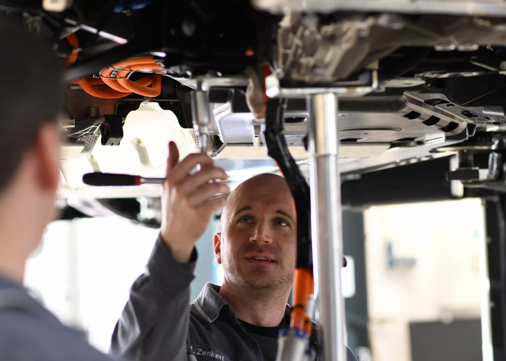 Du legst eine kleine Prüfung ab und erhältst ein Zertifikat. Damit darfst du an BMW-Elektrofahrzeugen arbeiten. Die Weiterbildungen dauern jeweils eine Woche und finden in München statt. Und die Kosten? Tragen wir.